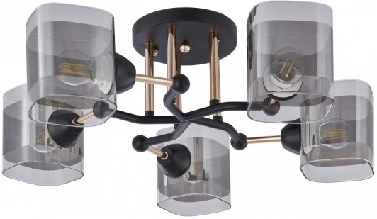 Потолочная люстра на штанге AMALFI 324308/5 BK+FG от российского бренда Arte Milano изготовлена из металла в золотом цвете. Рассчитана на лампочки с цоколем 5xE27, мощность 200 Вт. Стиль – модерн. Модель имеет 5 плафонов из стекла, подходит для установки на потолке в гостиной, в прихожей и коридоре, в спальне, на кухне, в зале. Освещаемая площадь до 10 кв. м. Питание от сети 220 В. Степень защиты от влаги и пыли IP20. Способ крепления – монтажная пластина. Габариты: длина 200 мм, высота 200 мм, диаметр 550 мм. Заказывайте Arte Milano 324308/5 BK+FG онлайн по низкой цене с гибкими условиями доставки на Fedomo.ru!