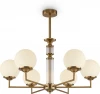 Серия Bolas создана на стыке классики и современности. Традиционная палитра сочетает латунь и белый цвет. Металлическая арматура имеет лаконичный дизайн, подчеркнутый акцентным элементом – прозрачным рельефным стеклом, декорирующим центральный стержень. Декор облегчает композицию, а стеклянные плафоны-сферы дополняют воздушный облик. Серия включает люстры на 6 и 8 плафонов, а также бра, что позволяет сформировать комплексное освещение, выдержанное в единой стилистике. Светильники легко интегрируются в пространство гостиной, спальни или столовой, оформленной в стиле ар-деко, модерн, неоклассика.