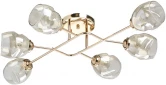 Металлическое основание потолочного светильника гальванизировано в цвет золота. Стеклянные плафоны отлиты в сложную форму и гальванизированы в цвет шампань.