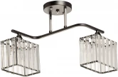 Металлическое основание светильника окрашено в черный цвет, отдельные элементы гальванизированы в цвет хрома. Плафоны люстры декорированы прозрачным стеклом прямоугольной формы со сложной огранкой.