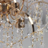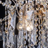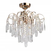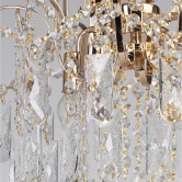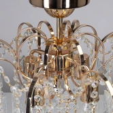 Актуальный цвет золота подойдет как в классический, так и в современный интерьер. Прозрачный хрусталь создает красивую игру света. Компактный размер потолочной люстры позволяет сохранить пространство комнаты при стандартном потолке. Заменяемые источники света удобны в эксплуатации.