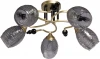 Контраст черного и золотого сохраняет свою актуальность и придает люстре современности. Стеклянные плафоны ручной работы добавляют люстре привлекательности и уникальности. Дымчатое стекло плафонов создает комфортное освещение и становится стильным элементом декора интерьера. Заменяемые источники света удобны в эксплуатации. Металлическое основание потолочной люстры гальванизировано в цвет матового золота. Отдельные элементы основания окрашены в черный цвет. Стеклянные фактурные плафоны выдуваются в сложную форму вручную и гальванизированы в дымчатый цвет.