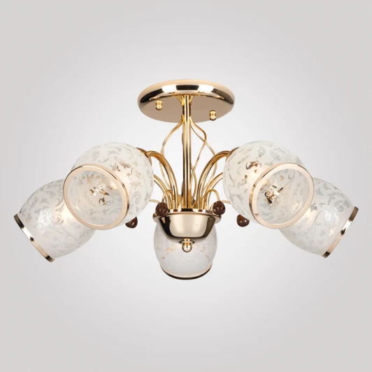 Потолочная люстра на штанге 00000073715 30026/5 золото от бренда Eurosvet изготовлена из металла в золотом цвете. Рассчитана на лампочки с цоколем 5xE27, мощность 300 Вт. Стиль – классический. Модель имеет 5 плафонов из стекла и металла, подходит для установки на потолке в гостиной, в спальне, на кухне, над обеденным столом. Освещаемая площадь до 24 кв. м. Питание от сети 220 В. Степень защиты от влаги и пыли IP20. Способ крепления – монтажная пластина. Габариты: длина 520 мм, ширина 520 мм, высота 270 мм. Заказывайте Eurosvet 00000073715 30026/5 золото онлайн по низкой цене с гибкими условиями доставки на Fedomo.ru!