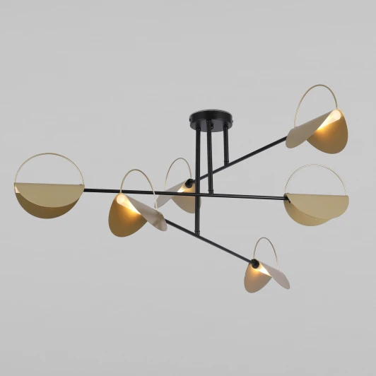 Потолочная люстра на штанге Grazia a062042 70148/6 черный/золото от бренда Eurosvet изготовлена из металла в золотом цвете. Рассчитана на лампочки с цоколем 6xG9, мощность 54 Вт. Стиль – модерн, лофт. Модель имеет 6 рассеивателей из металла, подходит для установки на потолке в гостиной, в спальне, на кухне, над обеденным столом. Освещаемая площадь до 7 кв. м. Питание от сети 220 В. Степень защиты от влаги и пыли IP20. Способ крепления – монтажная пластина. Габариты: длина 950 мм, ширина 950 мм, высота 400 мм. Заказывайте Eurosvet a062042 70148/6 черный/золото онлайн по низкой цене с гибкими условиями доставки на Fedomo.ru!