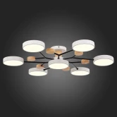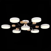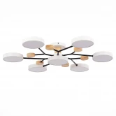 Потолочные светильники FAEMA компактные и современные обеспечивают естественное освещение и при этом относятся к классу энергосберегающих приборов. Модели состоят из 4, 5, 6 и 7 источников света, расположенных на черных металлических штангах в форме ветви. Нотку органичности и натуральности привносят деревянные элементы в корпусе светильника. Изделие создаст мягкий умеренный свет в любом помещении и станет отличным дополнением скандинавского стиля или хайтек.