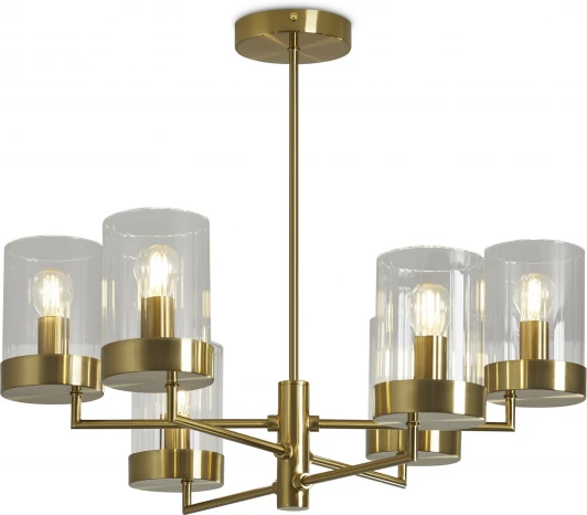 Арматура металл. Цвет арматуры латунь. Плафоны из рельефного стекла в форме цилиндра направлены вверх. Потолочные светильники подойдут для помещений с низкими потолками. Источник света лампа. Цоколь E14.