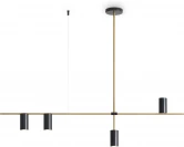 Арматура и плафоны из металла. Черный цвет дополнен латунной окантовкой. Поворотные плафоны и арматура позволяют видоизменять композицию и регулировать направление светового потока. Источник света – лампа GU10.