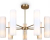 Арматура — металлическая, цвет — латунь. Стеклянные белые плафоны-цилиндры мягко рассеивают свет в стороны. Открытые края плафонов и глянцевая поверхность дают дополнительный свет в вверх и вниз для максимальной освещенности. Источник света — лампа с цоколем Е14.