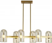 Арматура — металл. Цвет — латунь. Горизонтальные подвесы на твердой ножке. Плафоны из коньячного стекла в форме конуса. Направление плафона у настенного светильника можно регулировать за металлическое основание. Источник света лампа. Цоколь E14.