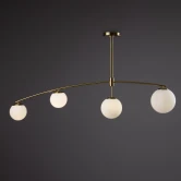 Арматура металл. Цвет латунь. Серия с необычной формой арматуры и раскидистыми плафонами. Белые плафоны в форме шара. Источник света лампа. Цоколь E14.