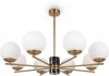 Элегантный дизайн со сдержанным характером модерна середины прошлого столетия. В основе композиции – простой и узнаваемый силуэт с выразительной деталью – мраморным основанием. Яркая черта придает модели уникальности. Металлическая арматура светильника окрашена в благородный оттенок латуни. Лаконичные рожки дополнены округлыми плафонами-сферами из матового стекла. Световой поток, направленный вверх, равномерно распределяется по комнате и визуально приподнимает потолки. Серия включает люстры на 6, 8 ламп и бра. Это готовый световой ансамбль для освещения гостиной, кухни, спальни или кабинета. Эклектичный дизайн легко интегрировать в современные и классические стилевые решения: ар-деко, mid-century modern, неоклассика, сканди, контемпорари.