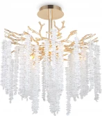 Материалы арматуры —металл, цвет — золото. Хрустальные декоративные элементы напоминают капельки - создают глубокие переливы света. Дизайн в трендовой растительной тематике. Источник света — лампа с цоколем G9 и с поворотной функцией.
