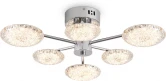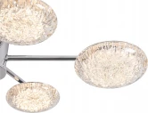 Материал арматуры — металл, цвет — хром. Потолочный светильник оснащен LED-источником света с цветовой температурой 2700К. Плафоны с рисунком из воздушных пузырьков акрила полусферической формы. Футуристичный дизайн идеально дополнит современные интерьеры и помещения с невысокими потолками.