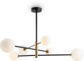 Металлическая арматура. Цвет — чёрный с золотистыми вставками. Плафоны — круглые из белого матового стекла - обеспечивают мягкое заливное освещение. На корпусе бра удобная кнопка для включения. Дизайн — минималистичный Источник света — лампа с цоколем G9.