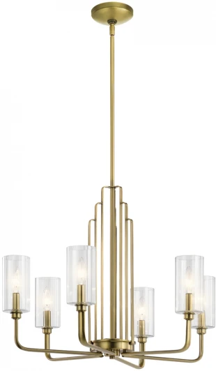 Люстра Kichler QN-KIMROSE6-BNB из коллекции Kimrose — шедевр в стиле ар-деко. Центром композиции являются геометрические детали в великолепной отделке «матовая латунь» или «полированный никель». Плафоны изготовлены из прозрачного рифленого стекла с вертикальными желобками для мягкого эффекта игры света. Для обычного освещения без эффектов просто снимите плафоны. Поставляется в комплекте со стержнями 1 х 152 мм и 3 х 305 мм.