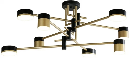 Потолочная люстра на штанге светодиодная 4013-8P из серии Modul от немецкого производителя Favourite исполнена в цвете золото из металла и подходит для размещения на потолке в гостиной, кафе, спальне, кабинете, офисе в стиле современный, техно. Модель имеет 8 плафонов из металла, цоколь 8xLED, мощность 48W и освещает площадь до 18 кв. м. Световой поток 3840 Lm. Цветовая температура ламп 4000К. Подходит для питания от напряжения 220V. Способ крепления — монтажная пластина. В комплекте лампочки. Габариты: высота — 350 мм, диаметр — 940 мм. Заказывайте Favourite 4013-8P онлайн по низкой цене с гибкими условиями доставки на Fedomo.ru!