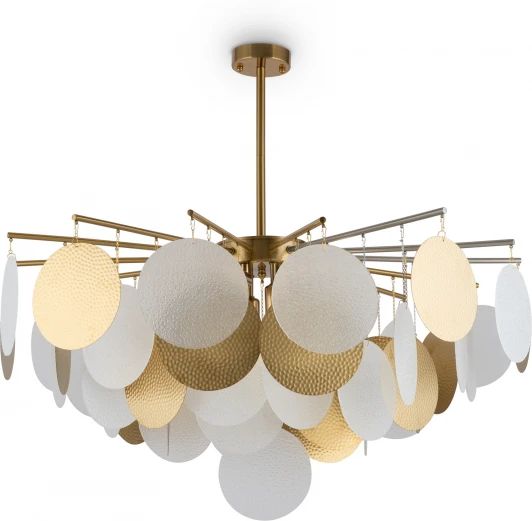 Магия фактур запечатлена в дизайне серии Porto. Изюминка модели – декор в виде тонких округлых пластин с эффектом замороженного стекла. Популярная серия имеет два цветовых решения: декор цвета рисовых полей, а также комбинация фактурного стекла и металлических пластин в цвете латунь. Арматура светильников в серии представлена в двух оттенках – латунь и никель. Тонко очерченные рожки и воздушный стеклянный декор создают трендовый эффект парения. Светильник словно замирает в воздухе, образуя своеобразную визуальную иллюзию. Модель предназначена для комнат, оформленных в стиле ар-деко, модерн, неоклассика. Серия включает люстры различного диаметра на 6 и 8 ламп.