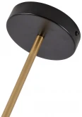 Каркас матового черного цвета с золотыми декоративными элементами, поворотные плафоны из выдувного стекла белого цвета, часть каркаса фиксируется тросиком для баланса