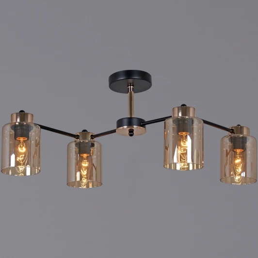 Потолочная люстра на штанге 01606-0.3-04 BK+FGD от российского бренда Reluce изготовлена из металла в золотом цвете. Рассчитана на лампочки с цоколем 4xE27, мощность 240 Вт. Стиль – модерн. Модель имеет 4 плафона из стекла и металла, подходит для установки на потолке в гостиной, в прихожей и коридоре, в спальне, на кухне, в зале. Освещаемая площадь до 12 кв. м. Питание от сети 220 В. Способ крепления – монтажная пластина. Габариты: длина 675 мм, ширина 400 мм, высота 270 мм. Заказывайте Reluce 01606-0.3-04 BK+FGD онлайн по низкой цене с гибкими условиями доставки на Fedomo.ru!