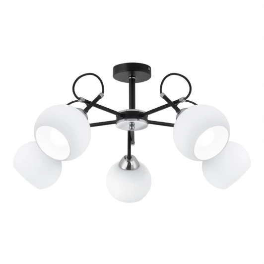 Потолочная люстра на штанге с шариками Стивен CL141251 от итальянской фабрики Citilux исполнена из металла, цвет белый и подходит для размещения на потолке в гостиной, кабинете, кафе, кухне, магазине, офисе, спальне в стиле модерн, современный. Модель имеет цоколь 5xE27 375W, 5 плафонов из стекла и освещает площадь до 17 кв. м. Световой поток 4100 Lm. Питание от сети 220V. Дополнительные опции: можно подключить диммер. Способ крепления — монтажная пластина. Габариты: высота — 305 мм, диаметр — 640 мм. Заказывайте Citilux CL141251 онлайн по низкой цене с гибкими условиями доставки на Fedomo.ru!