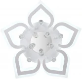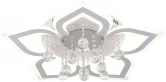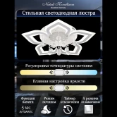 Светодиодный светильник с дистанционным управлением через пульт ДУ, смартфон, планшет. Лицевую часть составляют равноудалённые друг от друга рожки с симметричным дизайнерским узором. По их периметру расположена подсветка для отличного рассеивания света. Это обеспечивает равномерное рассеивание света. Стеклянные подвески эффектно преломляют свет, дополняя данную модель. В центральной части расположено зеркало, создающее отражение от подвесок. Дизайн люстры выполнен в современном стиле в белом цвете и отлично подойдёт в любой интерьер. Люстра имеет тёплый, естественный и холодный свет с регулировкой температуры свечения. Обладает плавной настройкой яркости в диапазоне от 10% до 100%. Имеется режим ночника и таймер отключения. Кроме того, от стандартного выключателя люстра имеет 4 режима свечения