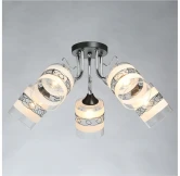 Потолочная люстра Олимпия 106010705 от немецкого бренда De City исполнена в цвете хром из металла, имеет 5 плафонов из стекла. Люстра подходит для размещения на потолке в гостиной, спальне, кухне, кабинете в стиле модерн. Лампочки с цоколем 3xE27 с мощностью 180W освещают площадь до 9 кв. м. Напряжение питания 220V. Дополнительные опции: возможность подключения диммера. Монтаж производится на пластину. Габариты: высота — 270 мм, диаметр — 580 мм. Заказывайте De City Олимпия 106010705 онлайн по низкой цене с гибкими условиями доставки на Fedomo.ru!