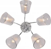 Серебристая люстра потолочная итальянского дизайна - Rivoli Shirley (арт. 9167-305). Пять металлических рожков люстры элегантно переплетаются между собой. Плафоны люстры под лампы Е27 60 Вт обтянуты светлой серебристой тканью с полупрозрачной текстурой. Тканевые абажурные плафоны современной люстры Shirley отлично пропускают свет. Освещаемая площадь люстры до 15 м2. Модель подойдёт в качестве люстры в гостиную, люстры в спальню, люстры в детскую. Идеальный вариант люстры для любой комнаты в квартире или в доме. Коллекцию дополняет люстра на потолок с 3 плафонами арт. 9167-303. Дизайнерские серые серебристые люстры Rivoli Shirly легки в уходе: ткань с пылеотталкивающими свойствами, корпус со стойким порошковым покрытием.