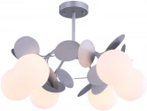 Эстетика минималистичной эры дизайна стала источником вдохновения для серии Satellite. Футуристический образ раскрывается через множество парящих в воздухе сфер. Они выполнены из матового и прозрачного стекла, подчеркивая визуальную легкость модели. Хаотичное расположение элементов добавляет композиции динамичности и экспрессивности. Арматура светильников выполнена из металла и представлена в двух оттенках: белый и серебро. Яркий и запоминающийся арт-объект украсит интерьеры, выполненные в стиле mid-century modern, хай-тек, техно, ретрофутуризм. Серия включает потолочные люстры на 10 и 6 ламп с цоколем E27.