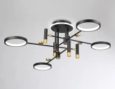 Потолочная люстра с пультом, на штанге, светодиодная Comfort FL51649 от российского бренда Ambrella в форме кольца изготовлена из металла в черном цвете. Рассчитана на диодные источники света, мощность 98 Вт. Стиль – современный, хай-тек. Модель имеет 8 плафонов, рассеивателей, подходит для установки на потолке в гостиной, в прихожей и коридоре, в спальне, на кухне, над обеденным столом. Освещаемая площадь до 32 кв. м. Цвет свечения – холодный, нейтральный, теплый, цветовая температура 3000-6400 К, индекс цветопередачи >80 Ra, световой поток 7350 lm, срок службы составит не менее 50000 часов. Питание от сети 220 В. Степень защиты от влаги и пыли IP20. Способ крепления – монтажная пластина. Габариты: высота 340 мм, диаметр 910 мм. В комплект входят: светильник, ПДУ, лампочки. Дополнительные функции: управление с помощью пульта, направление света регулируется, регулировка яркости, регулировка цветовой температуры, ночной режим. Заказывайте Ambrella FL51649 онлайн по низкой цене с гибкими условиями доставки на Fedomo.ru!