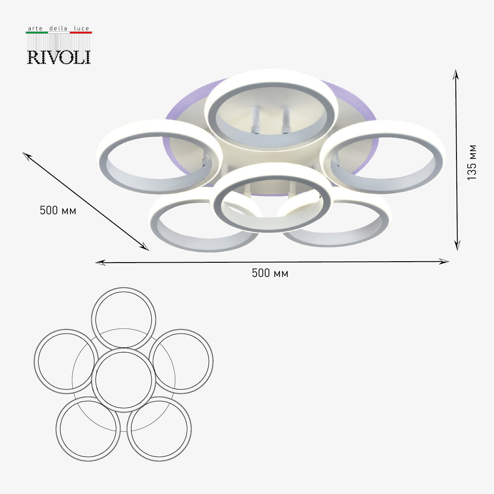 Потолочная люстра RGB светодиодная с пультом с кольцом Kresenz 6057-106 от итальянского бренда Rivoli исполнена в белом цвете из металла, имеет 6 рассеивателей из акрила и силикона. Люстра подходит для размещения на потолке в гостиной, холле, спальне, кабинете, офисе в стиле модерн. Лампочки с цоколем LED с мощностью 78W освещают площадь до 16 кв. м., имеют цветовую температуру 4000-6000К с теплым/нейтральным/холодным оттенком свечения. Световой поток 7500 lm. Напряжение питания 220V. Дополнительные опции: регулировка яркости и цветовой температуры, возможность подключения диммера. Монтаж производится на пластину. Габариты: длина — 500 мм, ширина — 500 мм, высота — 135 мм. Заказывайте Rivoli Kresenz 6057-106 онлайн по низкой цене с гибкими условиями доставки на Fedomo.ru!