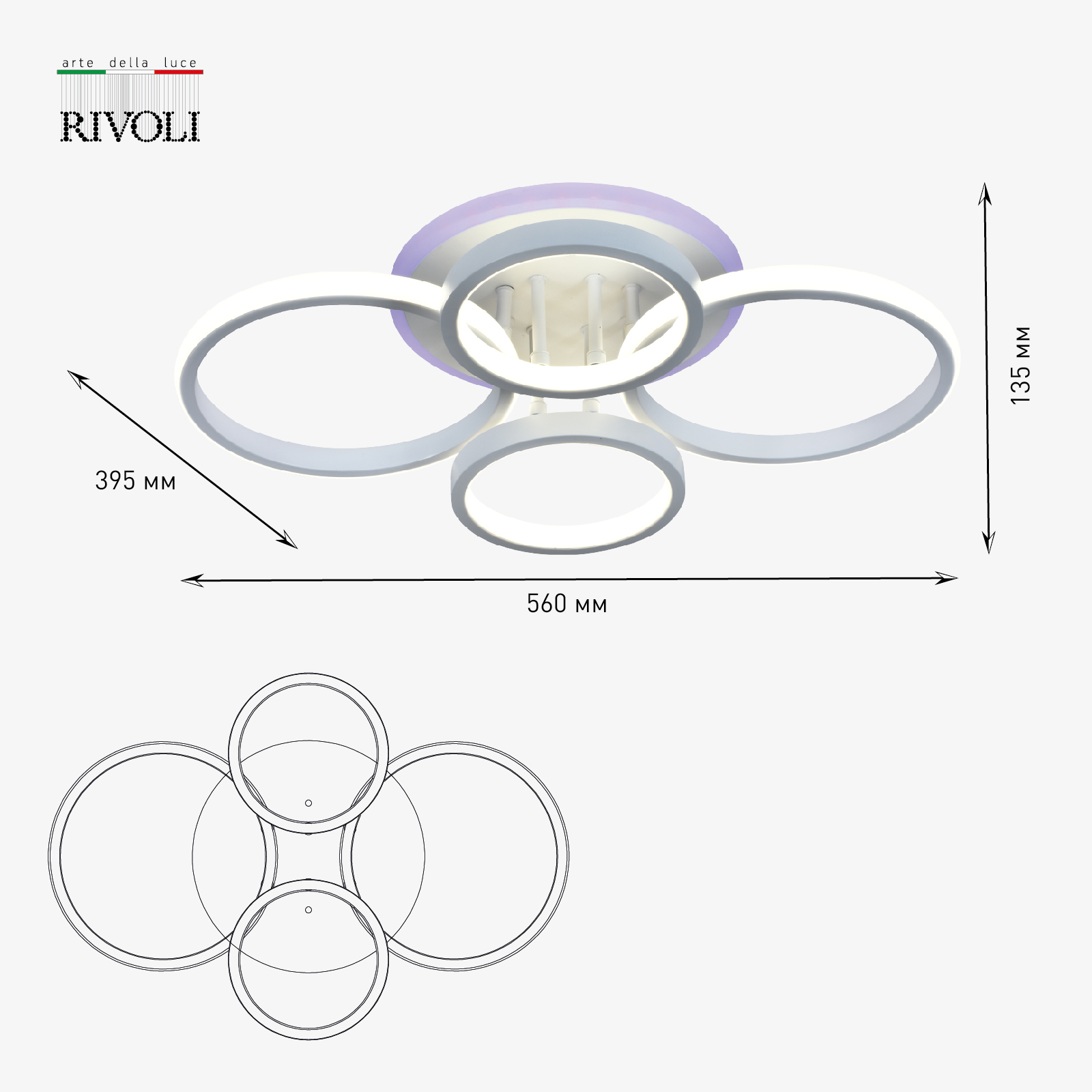 Потолочная люстра RGB светодиодная с пультом с кольцом Swanhild 6083-104 от итальянского бренда Rivoli исполнена в белом цвете из металла, имеет 4 рассеивателя из акрила и силикона. Люстра подходит для размещения на потолке в гостиной, холле, спальне, кабинете, офисе в стиле модерн. Лампочки с цоколем LED с мощностью 66,5W освещают площадь до 13 кв. м., имеют цветовую температуру 4000-6000К с теплым/нейтральным/холодным оттенком свечения. Световой поток 4650 lm. Напряжение питания 220V. Дополнительные опции: регулировка яркости и цветовой температуры, возможность подключения диммера. Монтаж производится на пластину. Габариты: длина — 560 мм, ширина — 395 мм, высота — 135 мм. Заказывайте Rivoli Swanhild 6083-104 онлайн по низкой цене с гибкими условиями доставки на Fedomo.ru!