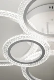 Светильник светодиодный, LED-люстра мощностью 132 Вт. Данную модель большой коллекции Rivoli Marion отличают 6 светодиодных колец различного диаметра. Большая белая светодиодная люстра с пультом ДУ подойдёт на потолок просторной спальни, гостиной, загородного дома, детской комнаты, игровой. Наличие различных световых сценариев (варианты яркости и цветовой температуры освещения) делают этот светодиодный потолочный светильник многофункциональным. Дизайнерскую коллекцию Rivoli Marion представляют: светильник LED настенный бра арт. 6107-401; светильники потолочные LED с разным количеством плафонов арт. 6107-103, 6107-104, 6107-105, 6107-106, 6107-107, 6107-108, 6107-109, 6108-106.