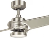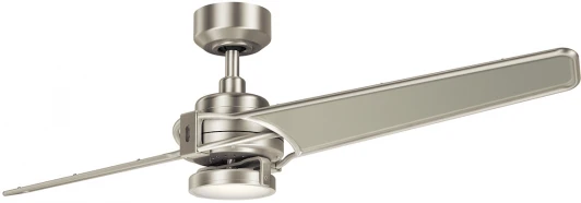 Интерьерный светильник с вентилятором от американского бренда Kichler Xety KLF-XETY-56-BN оснащен 3-скоростным пультом дистанционного управления с полной функцией. Шаг двух лопастей - 16 см, размах лопасти 142 см. Максимальный расход воздуха вентилятора CFM 5865, а минимальный CFM 1262, максимальное энергопотребление: 68.1 Вт, минимальное: 14.2 Вт. Этот потолочный вентилятор нельзя использовать с низким потолком, высота штока 30 см. Площадь помещения большая 45-90 м2, индекс цветопередачи 80 CRI, цветовой поток 1116 люменов, встроенная функция диммирования. Диаметр потолочной чаши: 15 см