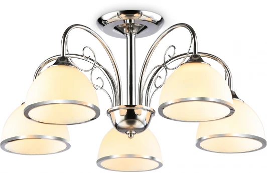 Потолочная люстра на штанге Traditional TR3182 от российского бренда Ambrella исполнена в цвете хром из металла, имеет 5 плафонов из стекла. Люстра подходит для размещения на потолке в гостиной, спальне, кухне, кабинете в классическом стиле. Лампочки с цоколем 5xE27 с мощностью 200W освещают площадь до 14 кв. м. Напряжение питания 220V. Дополнительные опции: возможность подключения диммера. Монтаж производится на пластину. Габариты: высота — 285 мм, диаметр — 575 мм. Заказывайте Ambrella Traditional TR3182 онлайн по низкой цене с гибкими условиями доставки на Fedomo.ru!