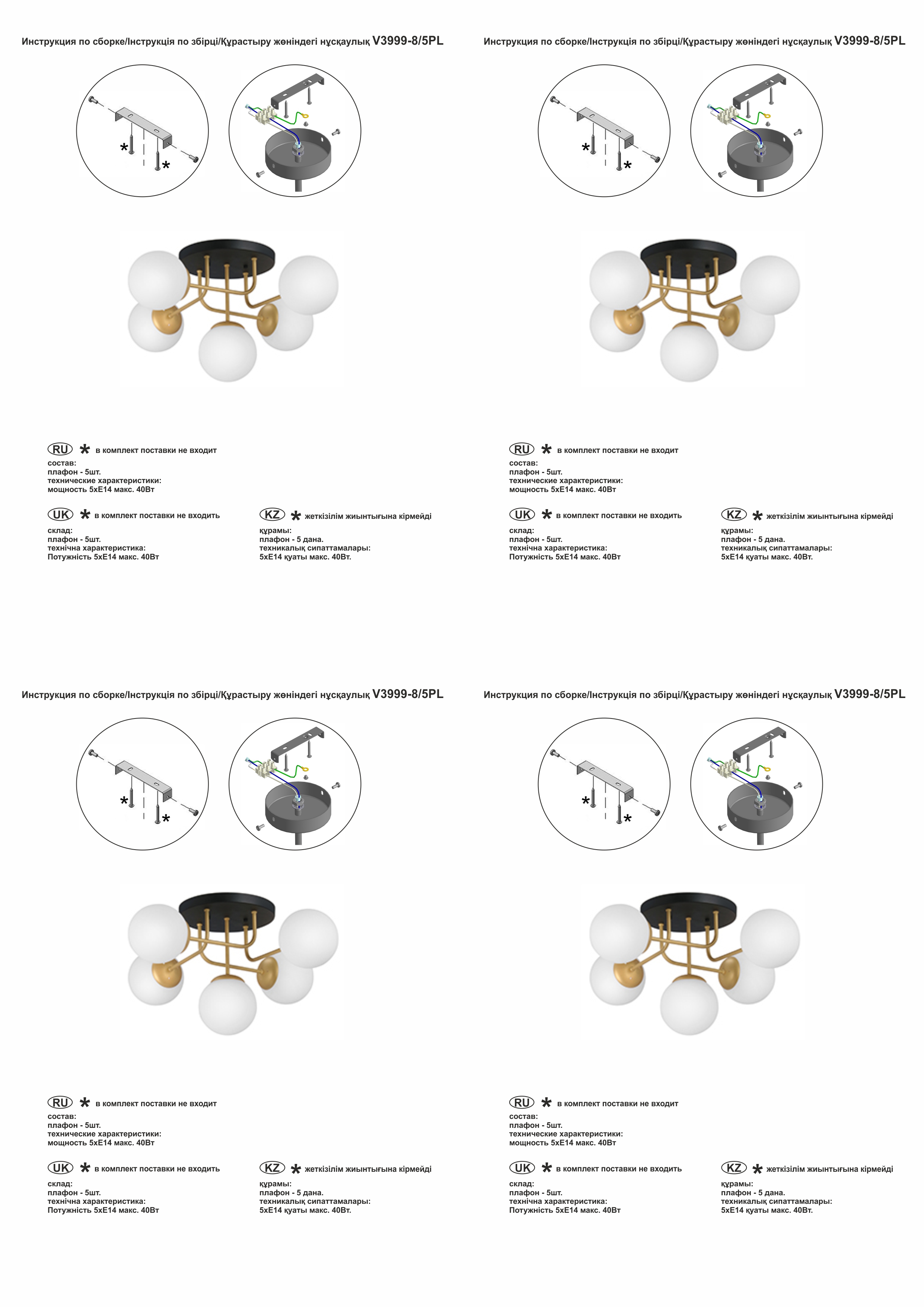 Потолочная люстра V3999-8/5PL от российского бренда Vitaluce в форме шара изготовлена из металла в золотом цвете. Рассчитана на лампочки с цоколем 5xE14, мощность 200 Вт. Стиль – современный. Модель имеет 5 плафонов из стекла, подходит для установки на потолке в гостиной, в прихожей и коридоре, в спальне, на кухне, в зале. Освещаемая площадь до 15 кв. м. Питание от сети 220 В. Способ крепления – монтажная пластина. Габариты: длина 610 мм, ширина 610 мм, высота 340 мм. Заказывайте Vitaluce V3999-8/5PL онлайн по низкой цене с гибкими условиями доставки на Fedomo.ru!