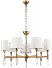 London — cтрогая и элегантная линия светильников в лучших традициях классического кабинетного стиля. Каждый элемент светильников London обладает тонкой детальной проработкой: в качестве металлического декора выбран строгий, ритмичный орнамент, а высококачественный хрусталь имеет прямоугольную форму. Оригинальные овальные абажуры благородного зеленого и мягкого белого цвета гармонично сочетаются с классической бронзой металла и хрустальными стильными декоративными элеменами. В линии London представлены люстры 2-х диаметров, настенное бра, настольная лампа и торшер.