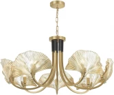 Ventaglio — в переводе с итальянского «веер»,это линия светильников выполненная в популярном стиле Ар-деко. Роскошная и изящная одновременно она станет изумительным украшением интерьера. Декоративный стеклянный элемент в виде листка гинкго билоба декорирован тонкими расходящимися от центра гранями, на краях листа создан эффект золотого градиента.