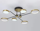 Потолочный светодиодный светильник с пультом, коллекция COMFORT. Модель FL5157 представлена в современном стиле техно. Светильник выполнен из металла в черном и золотом цвете. Эта модель оснащена встроенными светодиодами, благодаря чему вы забудете о замене дополнительных ламп. Так же с помощью инфракрасного пульта вы сможете регулировать цветовую температуру и яркость освещения. Данная модель подходит для натяжных потолков и будет прекрасным дополнением в любом помещении. 3000K/4200K/6400K