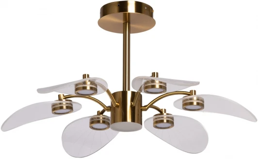 Цвет латуни прекрасно сочетается с современными формами и материалами. Светодиодные источники света закрыты прозрачным многогранным акрилом, создающим эффект красивой игры бликов света. Многорежимность освещения от 3000К до 6000К позволяет подобрать комфортную температуру света. Диммирование поможет выбрать необходимую интенсивность светового потока, а ПДУ обеспечит удобную эксплуатацию люстры. Качественные светодиоды экономичны и безопасны.