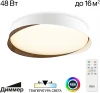 Светодиодный потолочный светильник Citilux BONNY CL754350G с яркой цветной RGB подсветкой выполнен в современном стиле. Основание металлическое. Оригинальный плафон с модной отделкой тёмно-коричневого цвета (под дерево) и матовым рассеивателем изготовлен из оптического полимера. Мощность изделия 48Вт, световой поток 4100Лм. С помощью пульта дистанционного управления можно плавно регулировать яркость 10% - 100%, менять цветовую температуру в диапазоне 3000K - 5500K, что позволяет настроить любые оттенки теплого, нейтрального или холодного света. Цветная многорежимная RGB подсветка поможет наполнить пространство яркими и насыщенными цветами. Функция таймера и 4 настраиваемых режима памяти позволяют управлять светильником максимально комфортно. Круглый накладной светильник подходит для всех видов потолков, в том числе натяжных. Тип крепления – через основание. Изделие комплектуется инфракрасным пультом ДУ. Для питания пульта применяются 2 батарейки формата ААА, напряжением 1,5V (не входят в комплект).