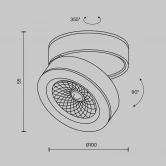 Материал корпуса – металл; цвет – чёрный или белый. Два размера и два варианта мощности – 7W или 12W. Горизонтальный и вертикальный поворотный механизм. LED-источник света. Цветовая температура – 3000 или 4000К. Высокий коэффициент цветопередачи >90.