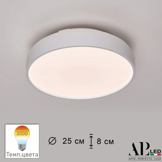 Потолочный светильник круглый светодиодный Toscana 3315.XM302-1-267/12W/3K White от российского бренда APL LED изготовлен из металла в белом цвете. Рассчитан на диодные источники света, мощность 12 Вт. Стиль – современный, техно. Модель имеет 1 рассеиватель из пластика, подходит для установки на потолке в гостиной, в прихожей и коридоре, в спальне, на кухне, в зале. Освещаемая площадь до 3 кв. м, цветовая температура 3000 К, световой поток 1180 lm. Питание от сети 220 В. Степень защиты от влаги и пыли IP20. Способ крепления – монтажная пластина. Габариты: высота 80 мм, диаметр 250 мм. Заказывайте APL LED 3315.XM302-1-267/12W/3K White онлайн по низкой цене с гибкими условиями доставки на Fedomo.ru!