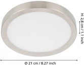 Потолочный светильник круглый светодиодный FUEVA 5 900584 от австрийского бренда Eglo изготовлен из металла в цвете никель. Рассчитан на диодные источники света, мощность 17 Вт. Стиль – современный. Модель имеет 1 рассеиватель из пластика, подходит для установки на потолке в гостиной, в прихожей и коридоре, в спальне, на кухне, в зале. Освещаемая площадь до 4 кв. м, цветовая температура 3000 К, световой поток 2000 lm. Питание от сети 220 В. Степень защиты от влаги и пыли IP20. Габариты: высота 28 мм, диаметр 210 мм. В комплект входят: лампочки. Дополнительные функции: подходит для подключения к диммеру. Заказывайте Eglo 900584 онлайн по низкой цене с гибкими условиями доставки на Fedomo.ru!