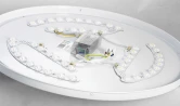 Металлическое основание и глянцевый акриловый плафон образуют прочную конструкцию со светорассеивающим эффектом, обеспечивая мягкое, равномерное свечение без засветов и тени. Светильник оснащен энергосберегающим LED-источником со сменной температурой света от теплой (3000 К) до холодной (6000 К), диммером и удобными дополнительными функциями — таймером и ночным режимом.