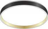 Светодиодный потолочный светильник Citilux ENZO CL753451G с яркой цветной RGB подсветкой выполнен в современно стиле. Основание металлическое. Плафон круглой формы из прочного полимера чёрного цвета с золотой декоративной окантовкой и рассеивателем из оптического полимера. Благодаря оригинальной конструкции, светильник равномерно освещает помещение и дополнительно подсвечивает потолок, что придаёт пространству дополнительный объём. Мощность изделия 68Вт, световой поток 5800Лм. С помощью пульта дистанционного управления пользователь может плавно регулировать яркость 10% - 100%, менять цветовую температуру в диапазоне 3000K - 5500K, что позволяет настроить любые оттенки теплого, нейтрального или холодного света. Цветная многорежимная RGB подсветка может наполнить пространство яркими и насыщенными цветами. Функция таймера и 4 настраиваемых режима памяти позволяют управлять светильником максимально комфортно. Накладной светильник подходит для всех видов потолков, в том числе натяжных. Тип крепления – через основание. Изделие комплектуется инфракрасным пультом ДУ. Для питания пульта применяются 2 батарейки формата ААА, напряжением 1,5V (не входят в комплект).