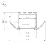 Алюминиевый анодированный профиль для светодиодных лент и линеек. Габаритные размеры (L×W×H): 2000x51,4x24,5 мм. Ширина площадки для ленты 24,2 мм. Экраны, заглушки и другие аксессуары приобретаются отдельно. Цена за 1 метр.