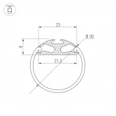 Алюминиевый анодированный профиль для светодиодных лент и линеек. Для создания круглых подвесных светильников, угол освещения до 180°. Габаритные размеры (L×W×H): 2000x23x8 мм. Ширина площадки для ленты 21,2 мм. Экраны, заглушки и другие аксессуары приобретаются отдельно. Цена за 1 метр.