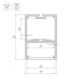 Комплект с экраном. Алюминиевый профиль для светодиодных лент и линеек. Цвет - чёрный RAL9005 (порошковая окраска). Габаритные размеры (L×W×H): 2500x49x70 мм. Ширина площадки для ленты 37 мм. Заглушки в комплекте (4 заглушки черного цвета, 16 шурупов). Отсек для БП 33х45мм. Аксессуары приобретаются отдельно. Цена за комплект.