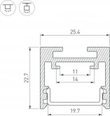 Габаритные размеры профиля составляют 2500 мм в длину, 25 мм в ширину и 22 мм в высоту. Площадки для установки светодиодных лент позволяют использовать ленты шириной до 12 мм и мощностью до 25 Вт/м. Это обеспечивает гибкость в выборе светодиодных лент и создает потрясающие световые решения.