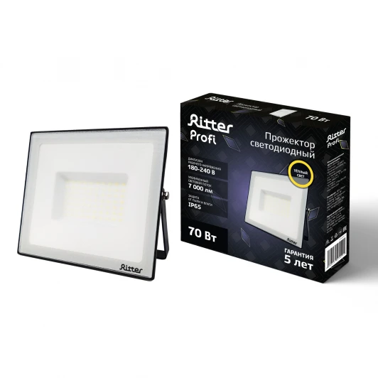 Прожектор уличный светодиодный PROFI 53429 1 от китайского бренда Ritter в черном цвете. Рассчитан на диодные источники света, мощность 70 Вт. Стиль – техно. Модель имеет 1 рассеиватель из стекла, подходит для установки на улице на полу, стене и потолке на даче, в кафе, в магазине, в офисе, в саду, на веранде и в беседке, 70 светодиодов. Освещаемая площадь до 14 кв. м, индекс цветопередачи >70 Ra, световой поток 7000 lm, угол рассеивания света 120 градусов. Питание от сети 220 В. Степень защиты от влаги и пыли IP65. Габариты: длина 178 мм, ширина 28 мм, высота 150 мм. В комплект входят: крон штейн. Дополнительные функции: направление света регулируется. Заказывайте Ritter 53429 1 онлайн по низкой цене с гибкими условиями доставки на Fedomo.ru!